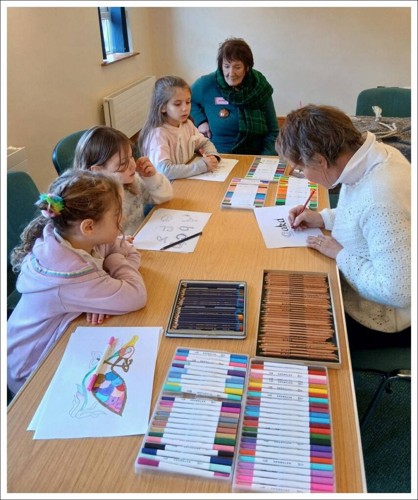 The weekend programme, 21 – 23 November, included a Mayoral Reception to welcome Carlow visitors; calligraphy workshops by Jacqui Brachie; storytelling in local Primary Schools by Marianne McShane; a lecture by Professor Pádraig Ó Macháin from University College Cork about the making of Irish manuscripts; a Columban Way guided walk; a visit to Nendrum Monastic site on Mahee Island, Strangford Lough; and a wonderful concert in Bangor Abbey performed by the Bangor’s Ghost Collective, a group of talented local musicians, poets and storytellers.