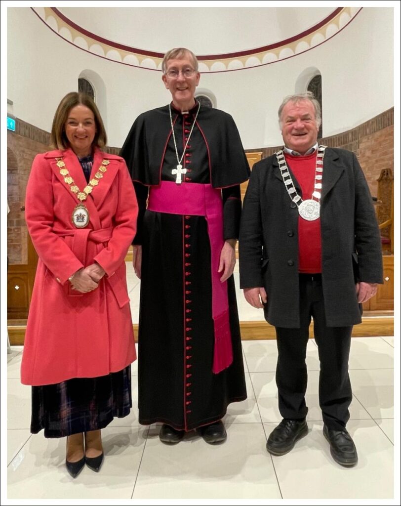 Deborah Girvan, Chairwoman of Friends of Columbanus Bangor and Festival Director, said, “In partnership with Carlow County Council, we secured funding from the Shared Island Initiative to help us run the Columbanus Festival. We were delighted to welcome Cllr Ken Murnane, the Mayor of Carlow; Michael Brennan, Director of Services in Carlow County Council; and Damian Howard, Friends of Columbanus Myshall, Denis Nulty, Bishop of Kildare and Leighlin; and Fr. Thomas O’Byrne, Administrator of Carlow Cathedral who had travelled from County Carlow to attend the festival.