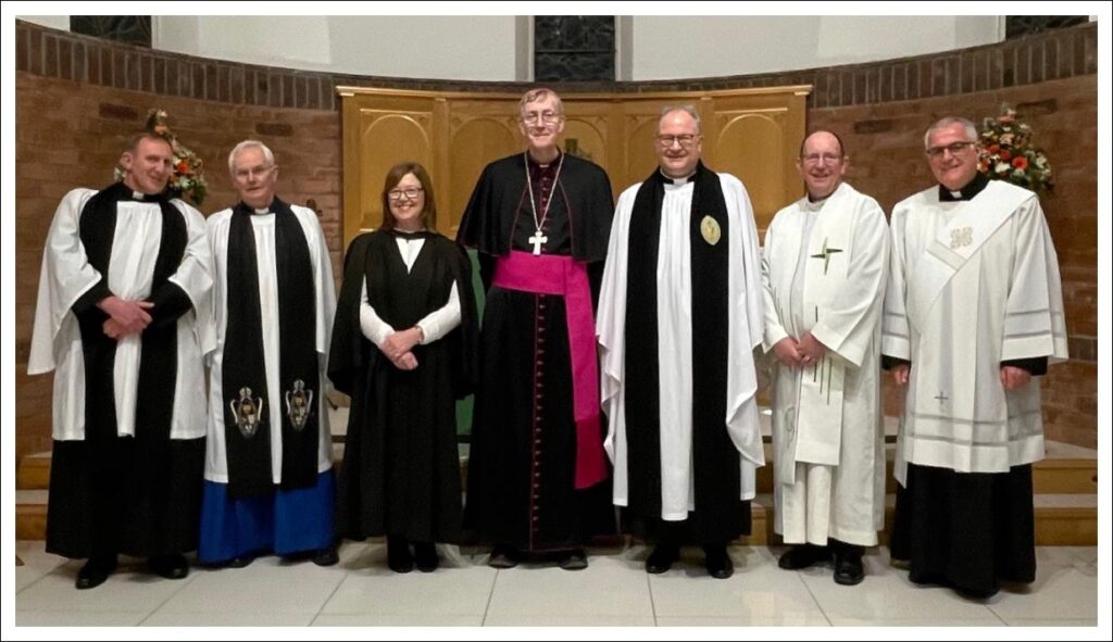 Rev Johnny Watson, St Columbanus CoI; Canon Ronnie Nesbitt, Bangor Abbey CoI; Rev Mairisine Stanfield, Bangor City Presbyterian Church; Bishop Denis Nulty of Kildare and Leighlin; Canon Simon Doogan, St Columbanus CoI; Fr. Thomas O’Byrne, Administrator of Carlow Cathedral; and Deacon James McAllister, St Comgall’s Catholic Church